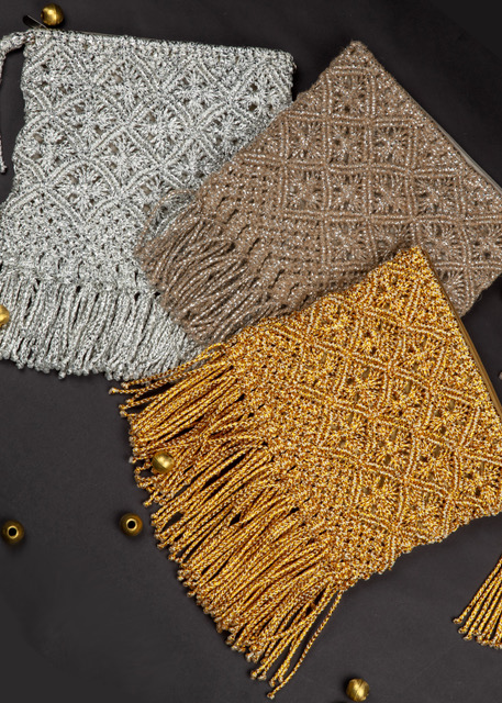 The ultimate boho-luxe destination, Bahama, is the inspiration behind our hand made metallic yarn macramé bags. Made in-house by our talented women artisans these bags lift any look from ordinary to luxe.